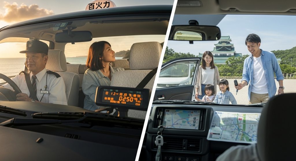 自由度と総費用を優先するならレンタカー、安全性と気楽さを優先するならタクシーが向いています。
